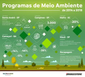 Em virtude dos trabalhos de reutilização e reciclagem de materiais, reaproveitamento da água e eficiência energética realizados, o Centro de Distribuição Ecopia da Bridgestone, localizado na cidade de Mauá – SP, recebeu a certificação LEED