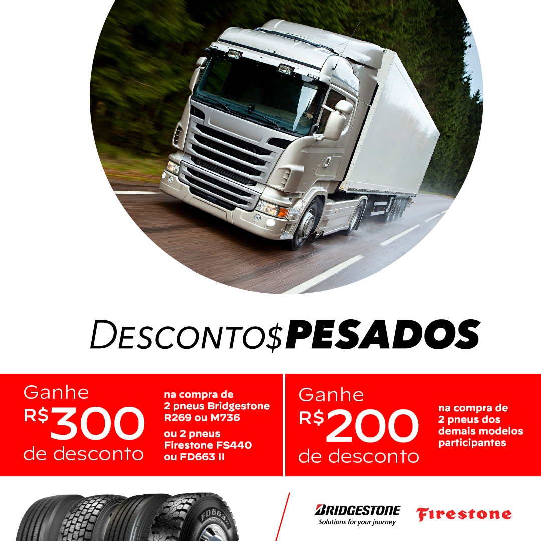 CAMINHONEIROS TEM DESCONTOS EXCLUSIVOS EM PNEUS BRIDGESTONE E FIRESTONE COM PROMOÇÃO DESCONTOS PESADOS