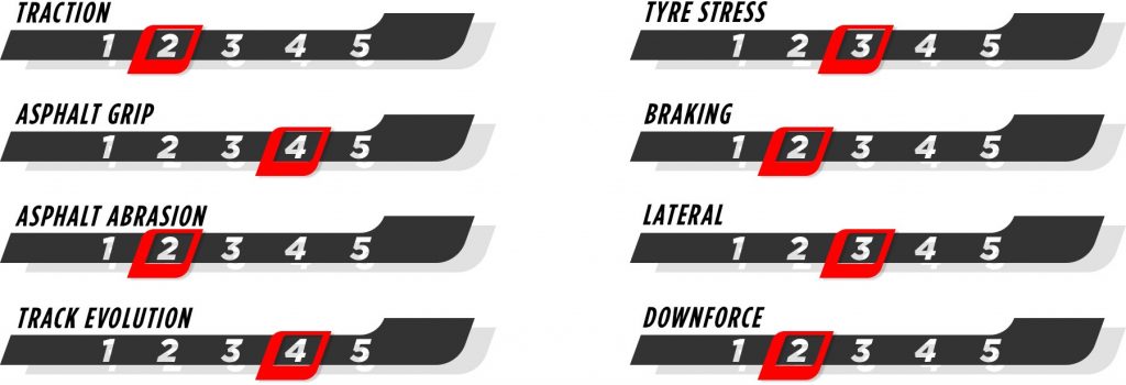 Como normalmente acontece nos circuitos de rua, a evolução da pista será muito elevada. E na classificação será crucial escolher exatamente o momento certo para ir à pista para marcar um bom tempo de volta, e também será importante conseguir a volta de preparação no ponto certo. Em eventos anteriores aqui, vimos pilotos fazendo duas voltas de preparação para deixar os Macios na temperatura certa e isso pode causar problemas de tráfego.