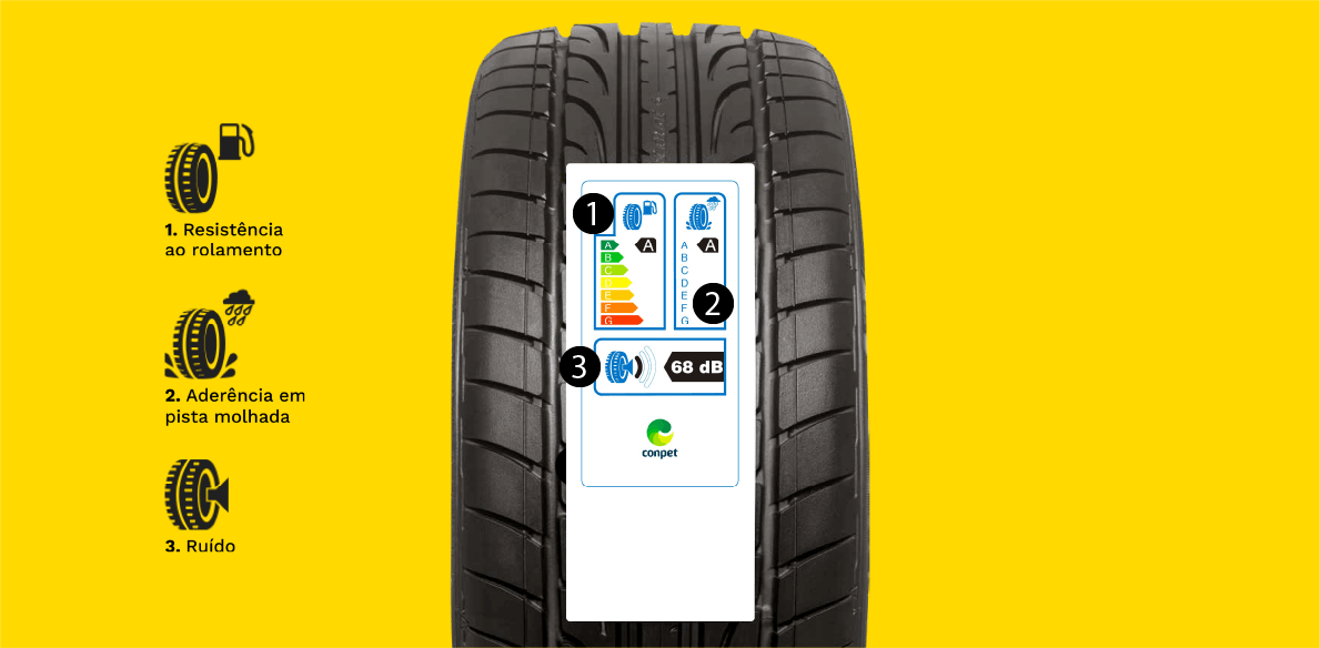 De acordo com o Programa Brasileiro de Etiquetagem (PBE), há 3 critérios avaliados que precisam constar nas etiquetas coladas nos pneus: