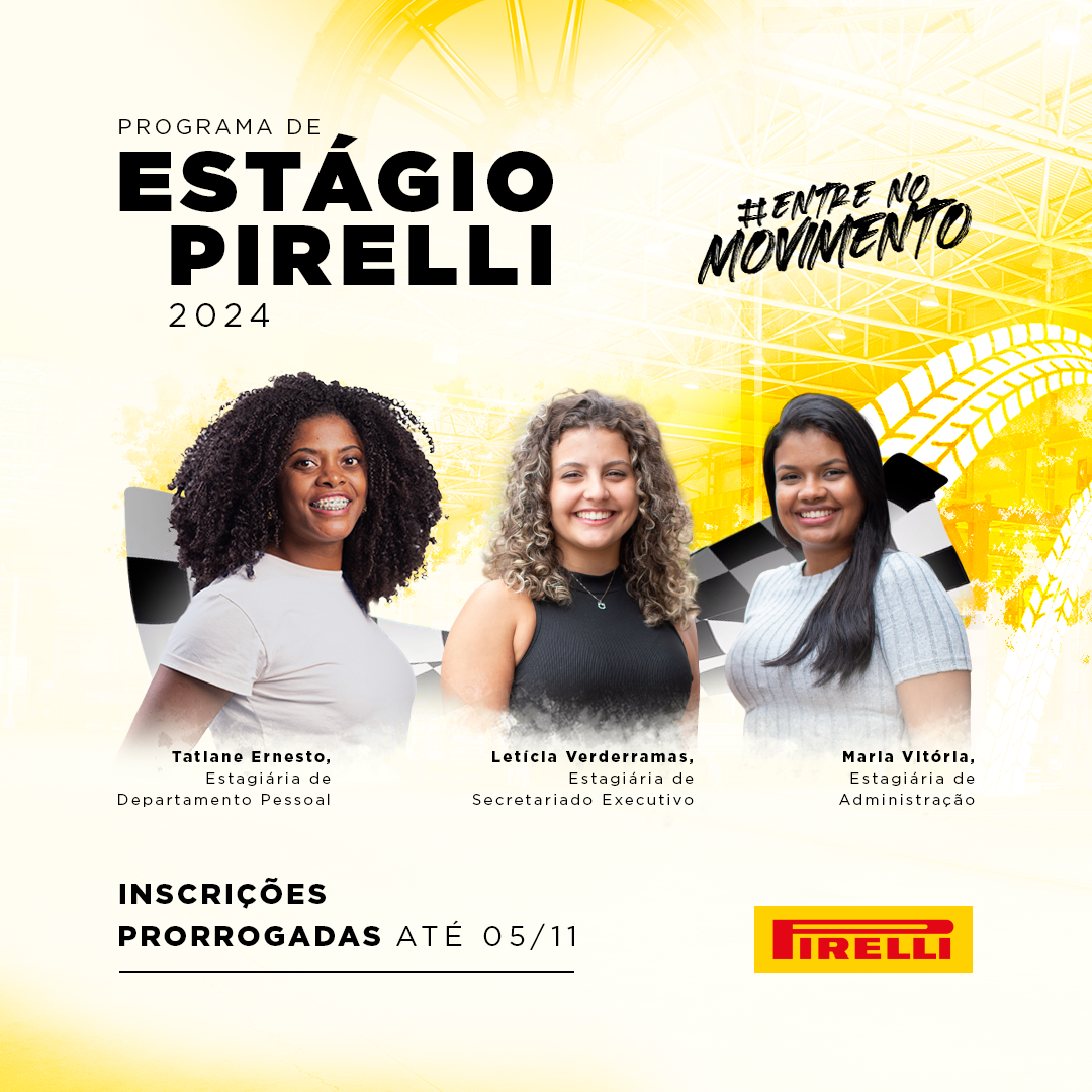 ENTRE NO MOVIMENTO: INSCRIÇÕES PARA O PROGRAMA DE ESTÁGIO 2024.1 DA PIRELLI SÃO PRORROGADAS