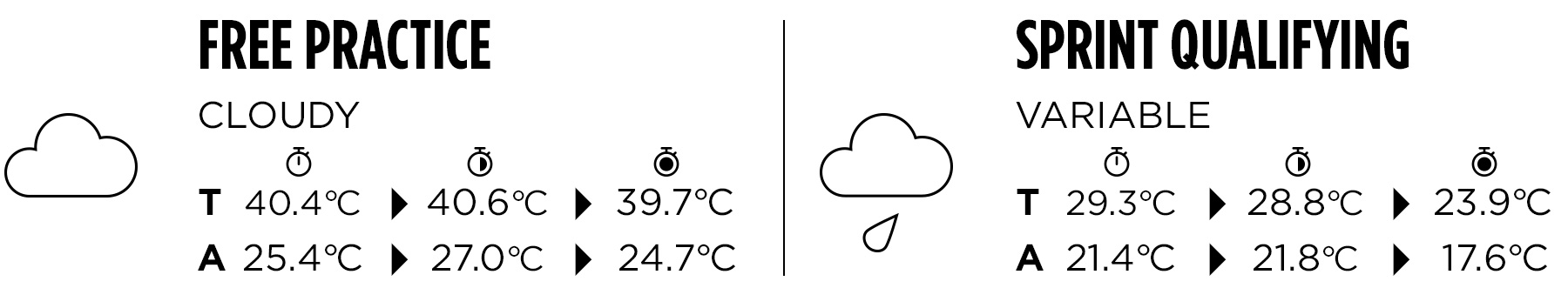 Em geral, as condições da pista mudaram muito rapidamente ao longo do dia. Contrariando as expectativas, não vimos qualquer granulação hoje, enquanto com os compostos de pista seca, vimos uma degradação bastante significativa, mas é muito cedo para ter uma ideia clara sobre estratégias. A Corrida Sprint será uma excelente sessão de testes para verificar o comportamento dos pneus durante um longo stint.