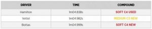 • A batalha no topo é muito equilibrada, com Mercedes e Ferrari liderando uma sessão cada hoje, sempre com o composto macio.