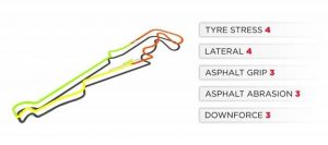 • O circuito foi amplamente recapeado no ano passado, com quase todos as curvas – aproximadamente um terço da volta – tendo recebido um novo asfalto. Isso é de especificação semelhante ao asfalto existente, o que deve fornecer uma superfície consistente ao longo de toda a volta.
