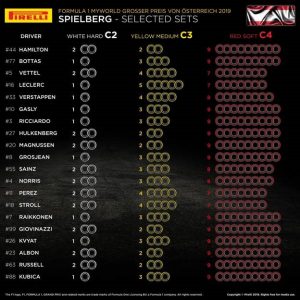 Milão, 18 de junho de 2019 – A Federação Internacional de Automobilismo (FIA) informou à Pirelli as escolhas de pneus de cada equipe para o Grande Prêmio da Áustria, que será realizado entre os dias 28 e 30 de junho de 2019.