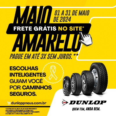 Responsável por fabricar pneus, a Dunlop traz em seu DNA a busca incessante por segurança. Como uma das apoiadoras da campanha Maio Amarelo, que visa proporcionar um trânsito mais seguro e com menos acidentes, a Dunlop reforça seu compromisso com o público brasileiro, colocando no mercado pneus capazes de contribuir para a redução de acidentes, salvando vidas.