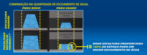 • Máxima aderência e frenagem sobre piso molhado, mesmo quando usado*