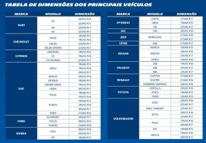 MICHELIN PRIMACY 4 – tabela de dimensões dos principais veículos na América do Sul: