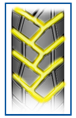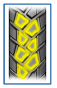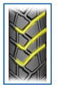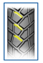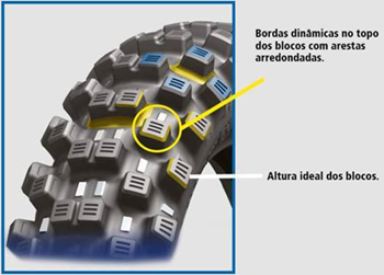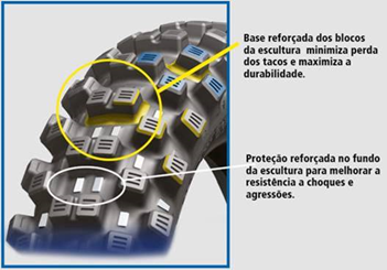O topo recortado da borda dos blocos evita o seu rompimento e aumenta o tempo de vida útil do pneu.