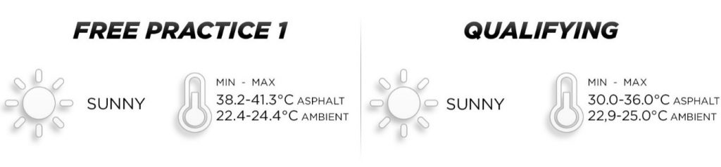• Como todos os outros pilotos, Verstappen usou o pneu P Zero Vermelho macio do início ao fim da classificação. Depois de alguma chuva durante a noite, que teve o efeito de ‘reiniciar’ a pista, a classificação se iniciou às 17h (horário local) com sol e temperaturas de 25 graus centígrados ambiente e 36 graus na pista, além de algumas rajadas de vento.