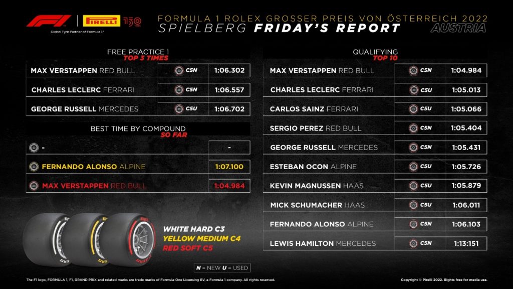 • O pneu P Zero Roxo supermacio foi o pneu eleito para a classificação da Fórmula 2 (nomeado juntamente com o P Zero Amarelo médio este fim de semana). O piloto da ART Grand Prix, Frederik Vesti, conquistou sua pole de estreia, por apenas 0s035 de Juri Vips, da Hitech. O outro carro Hitech, de Marcus Armstrong, começará a corrida de grid invertido de amanhã da pole, tendo se classificado em 10º.