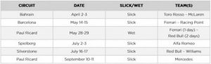 CALENDÁRIO DE TESTE DE DESENVOLVIMENTO DE PNEUS DE 2020