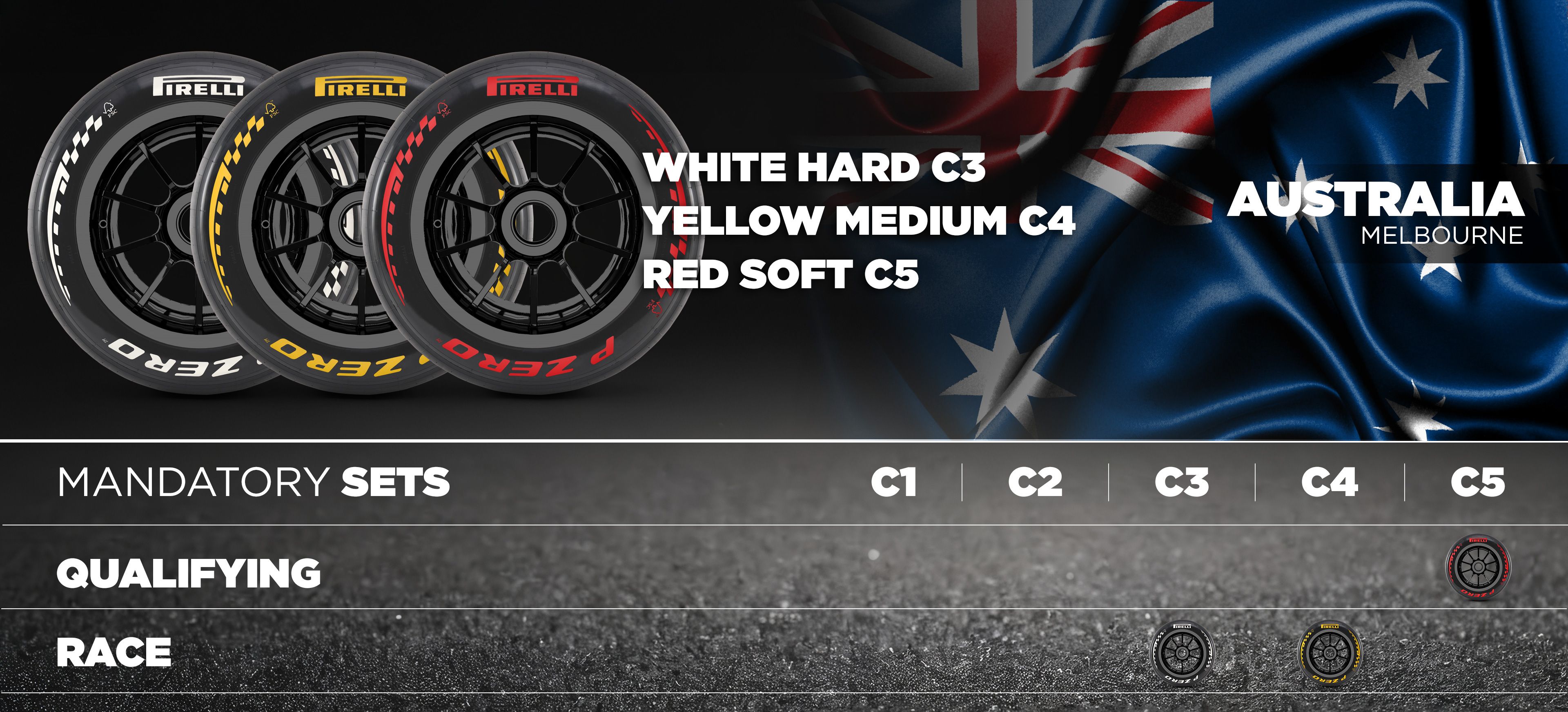 Para Melbourne, de 6 a 8 de março, as escolhas são C3, C4 e C5. Em 2024, essa combinação favoreceu uma estratégia de duas paradas, utilizando os três compostos. No início deste ano, as condições climáticas variáveis levaram ao uso de pneus Intermediários em uma corrida que pôde ser dividida em três fases distintas, com apenas a parte central permitindo o uso de pneus slick.