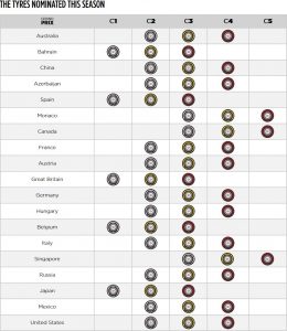 • Das três melhores equipes, os pilotos da Red Bull são os únicos a fazer escolhas idênticas de pneus: os da Mercedes e Ferrari seguiram caminhos diferentes, com a Ferrari optando pela maior quantidade de pneus macios.