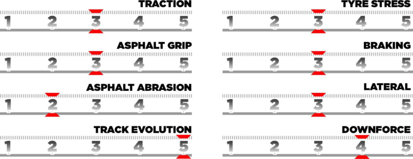 No ano passado, os pneus para pista seca não foram necessários para a corrida, mas quando utilizados na sexta-feira e no sábado de manhã, apresentaram altos níveis de desgaste, além da granulação, especialmente no eixo traseiro. O circuito havia sido totalmente recapeado, resultando em uma superfície muito lisa, menos abrasiva do que nos anos anteriores, embora ainda com muitas ondulações ao longo da pista.