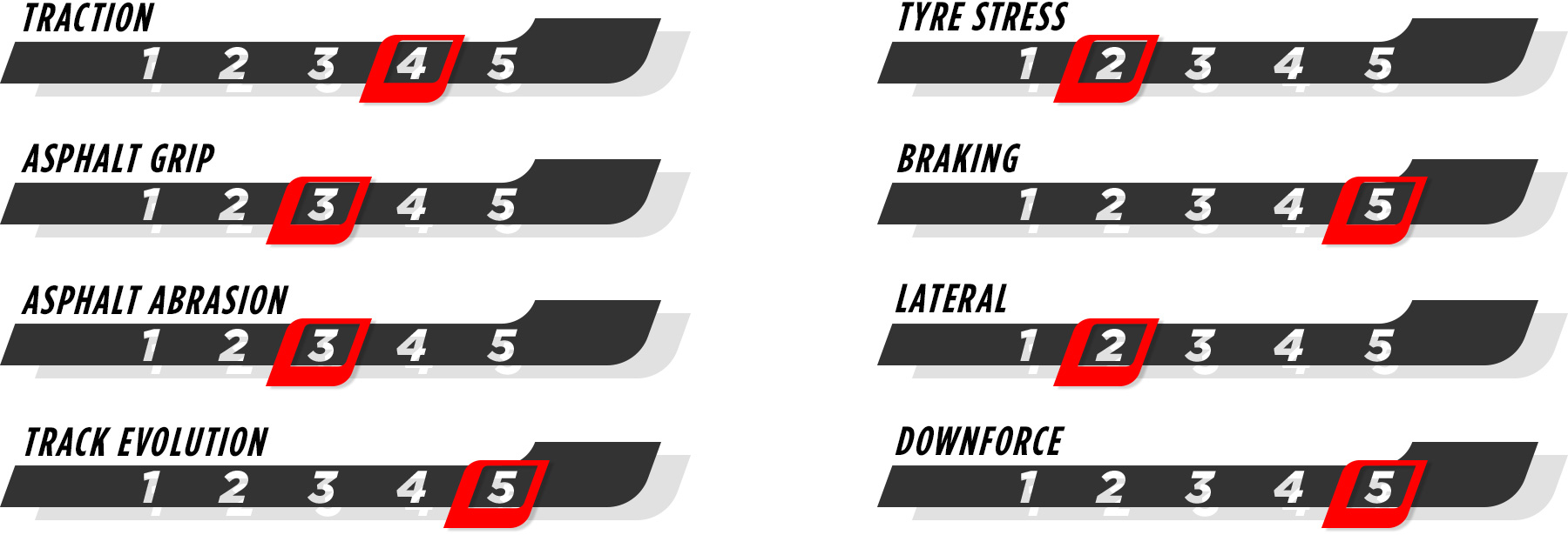 Normalmente, o Macio é puramente um pneu de classificação, com as voltas de corrida divididas entre o Médio e o Duro. No entanto, ano passado, o C5 fez sua parte no domingo, especialmente no primeiro stint, com os pilotos querendo aproveitar ao máximo sua aderência extra na largada. A degradação nesta pista se deve principalmente ao estresse térmico, não tanto na superfície do pneu, mas dentro dele, algo que não se vê com frequência e que varia muito dependendo da configuração do carro e da carga aerodinâmica que os carros geram.