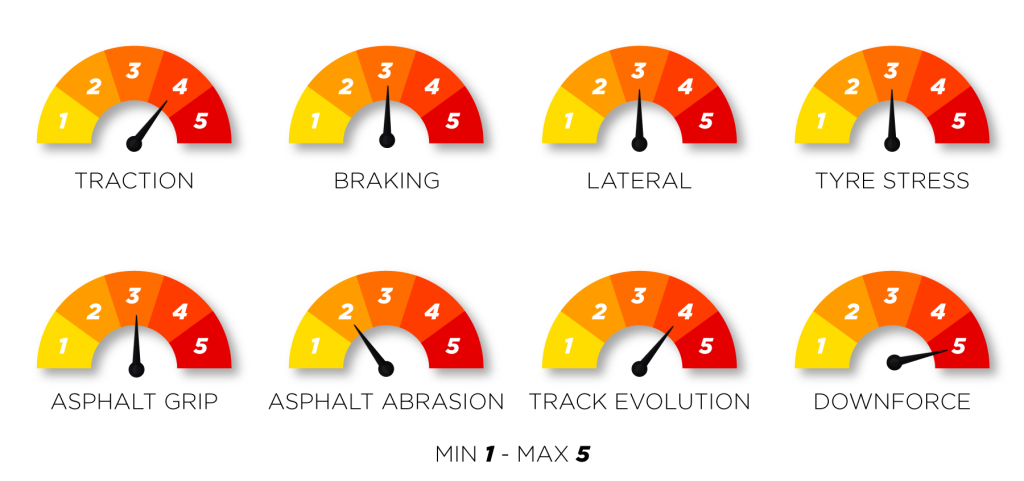 • Hungaroring não é um circuito particularmente de alta carga de energia, com asfalto liso que às vezes é irregular em alguns lugares e as demandas dos pneus são mais relacionadas à tração do que à frenagem.