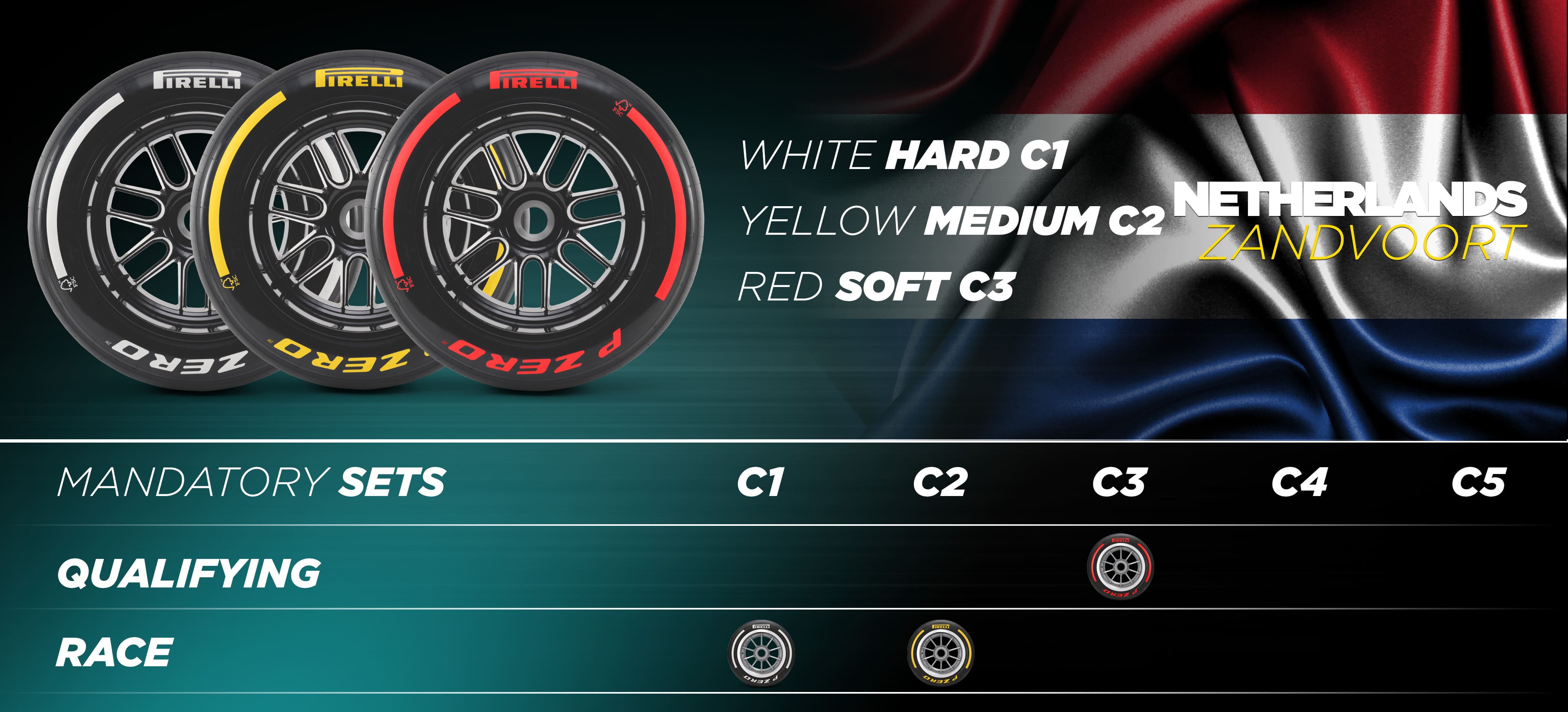 A partir de Budapeste, de 19 a 21 de julho, será a vez do trio mais macio, com o C3 como Duro, o C4 como Médio e o C5 como Macio. Uma semana depois, o circo segue para uma das pistas mais emocionantes e exigentes do calendário, Spa-Francorchamps, com sua vasta variedade de tipos de curvas e algumas grandes compressões devido a mudanças na inclinação. Os compostos do meio da gama estarão em uso aqui, com o C2 como Duro, o C3 como Médio e o C4 como Macio. Depois seguiremos para Zandvoort, de 23 a 25 de agosto, um desafio muito difícil, com duas curvas inclinadas onde entrará em jogo o trio de compostos mais duros, como usado em Silverstone: C1 como Duro, C2 como Médio e C3 como Macio.