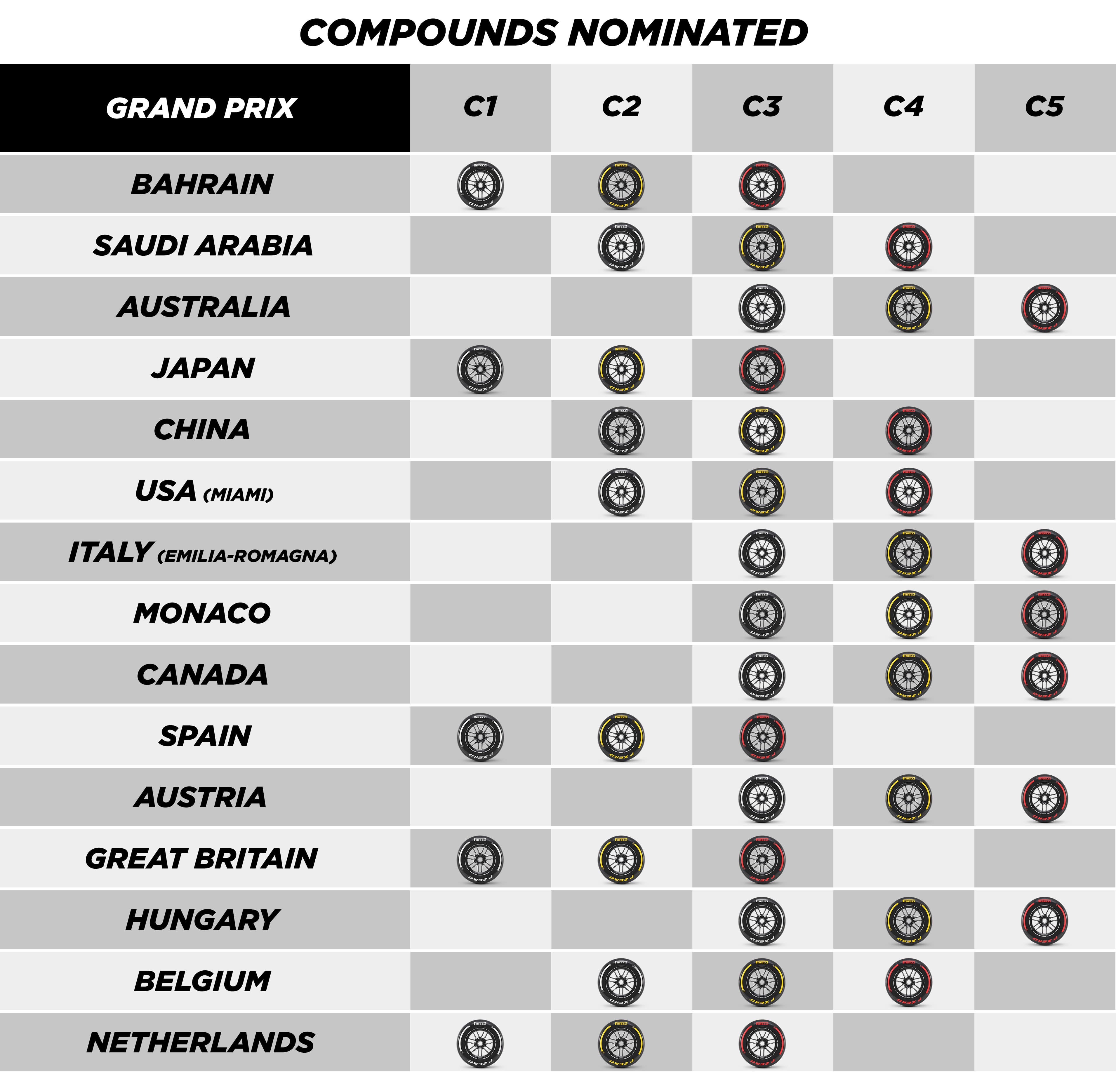 Pirelli F1 – Todos os compostos na pista ao longo das três próximas corridas