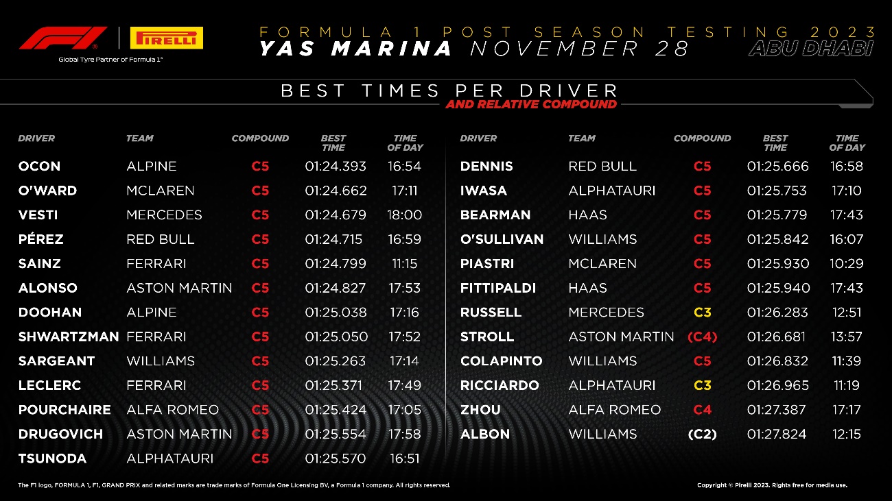 Com o campeonato mundial chegando ao fim no último domingo, havia apenas mais um dia de testes para ser cumprido no circuito de Yas Marina, em Abu Dhabi, com todas as dez equipes correndo com dois carros cada.