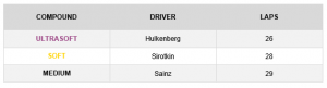 *Os números acima dão o total de quilômetros percorridos durante os dois treinos livres com todos os pilotos combinados.