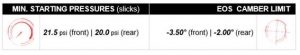 PRESSÕES MÍNIMAS PARA A LARGADA E LIMITES DE CAMBAGEM