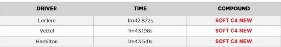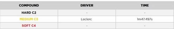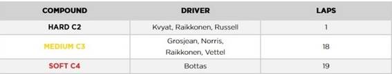 • A diferença de desempenho entre os pneus médios e macios deve ficar entre 1s2 e 1s4, mas devido à evolução da pista, uma diferença maior de 1s7 foi vista – pois os carros estavam rodando no composto mais rápido à medida que a pista melhorava.