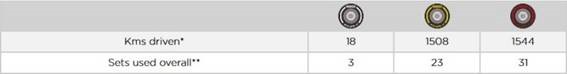 • O desgaste e a degradação são baixos, graças a superfície lisa e a baixa demanda de energia. Como resultado, as equipes se concentraram nos pneus macios e médios, não no duro.