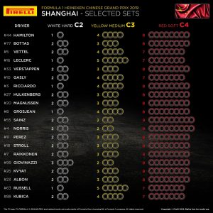 Milão, 2 de abril de 2019 – A Federação Internacional de Automobilismo (FIA) informou à Pirelli as escolhas de pneus de cada equipe para o Grande Prêmio da China, que será realizado entre os dias 12 e 14 de abril de 2019.