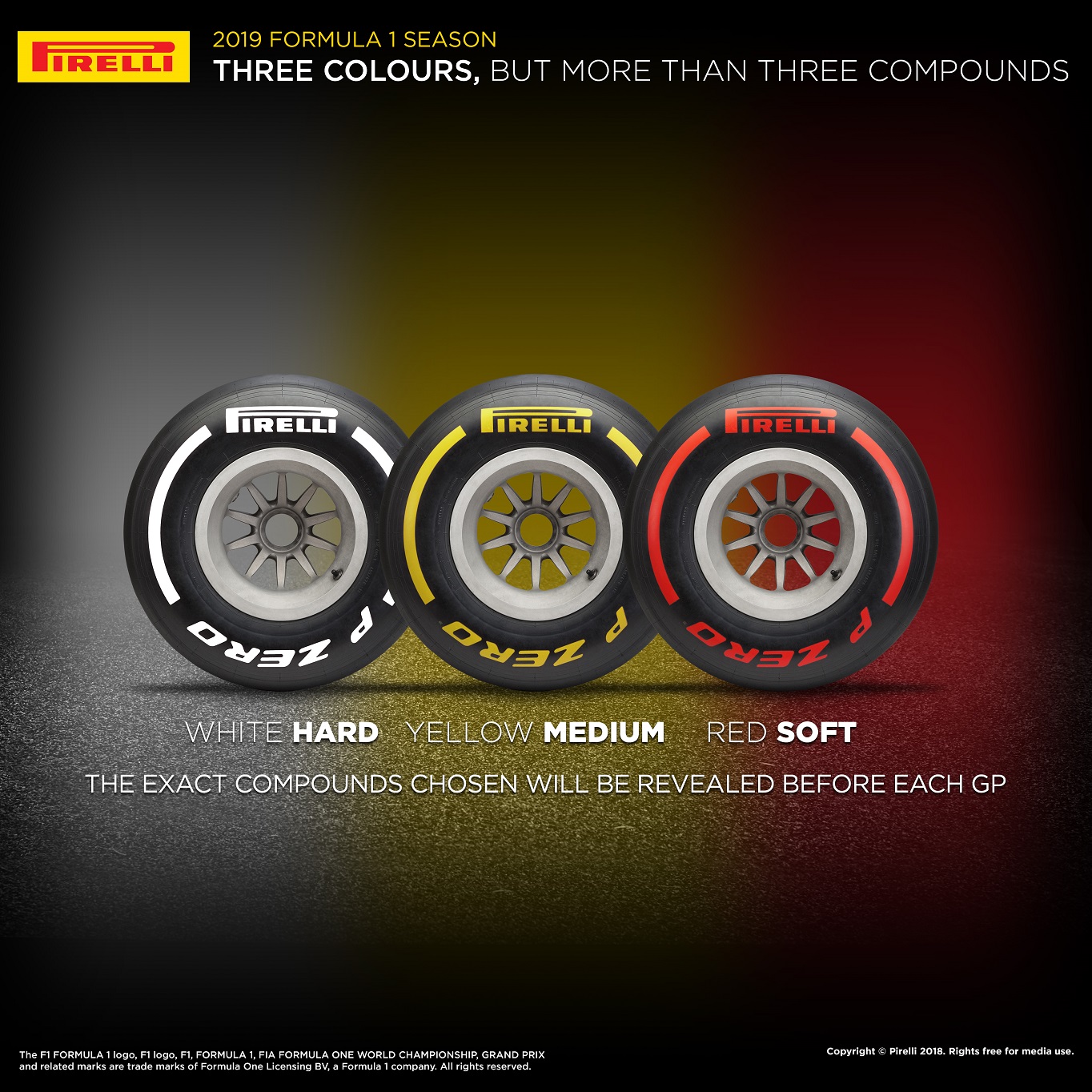 Para a próxima temporada, antes de todas as etapas, a Pirelli revelará quais compostos exatos foram selecionados para comporem as seleções de duro, médio e macio, para o fim de semana. Este novo sistema torna mais simples para os fãs casuais identificarem a diferença entre os pneus utilizados pelos pilotos e, ainda, permite que torcedores com mais conhecimento da Fórmula 1 saibam quais compostos específicos estão sendo usados com mais detalhe.