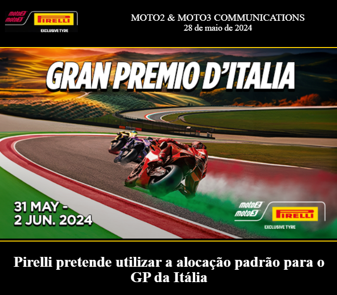 Pirelli Moto2 e Moto3 – Pirelli pretende utilizar a alocação padrão para o GP da Itália