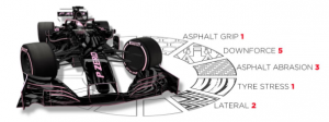 • O pneu traseiro esquerdo é o mais exigido em Singapura, que tem a segunda volta mais lenta do ano, atrás apenas de Mônaco.