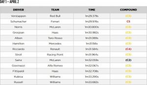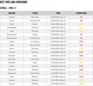 “No final conseguimos concluir o trabalho que precisávamos fazer no teste do Bahrein com nossos pneus protótipo para 2020, apesar de perdermos várias horas por causa da chuva no dia da abertura. Muito obrigado a todos os pilotos que participaram no nosso teste: especialmente para Fernando Alonso, cuja experiência, mais uma vez, tem sido um benefício enorme à medida que começamos a analisar os dados que coletamos. Nos próximos dias e semanas vamos analisar os números de perto para determinar o próximo passo e como podemos otimizar o que será o último ano dos pneus de 13 polegadas na próxima temporada. Em relação ao teste geral dos times, cada equipe levou a cabo seus próprios programas individuais usando os atuais pneus que tinham escolhido antecipadamente. Obviamente e compreensivelmente, nenhum deles tinha selecionado pneus de chuva, mas ainda assim tivemos testes produtivos durante os dois dias. Parabéns ao Mick Schumacher por sua estreia de Fórmula 1: como todos os outros, ficamos impressionados pelo que ele alcançou durante sua primeira participação na F1”.