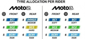 - Considerando a menor potência das motos da categoria, para os pilotos da Moto3™, a Pirelli confirma as soluções de referência utilizadas neste ano: SC1 e SC2, tanto na dianteira quanto na traseira. No ano passado, o SC2 foi o composto mais utilizado na corrida, tanto na frente quanto atrás.