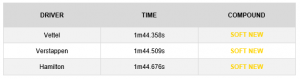 TL1 – PRIMEIRO TREINO LIVRE (TRÊS MELHORES TEMPOS)