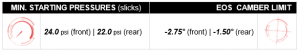 PRESSÕES MÍNIMAS PARA A LARGADA E LIMITES DE CAMBAGEM