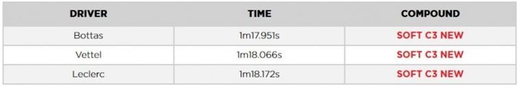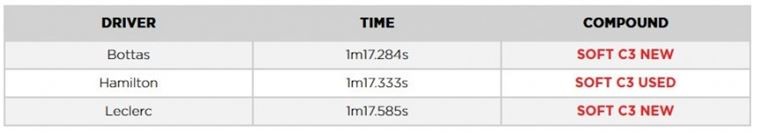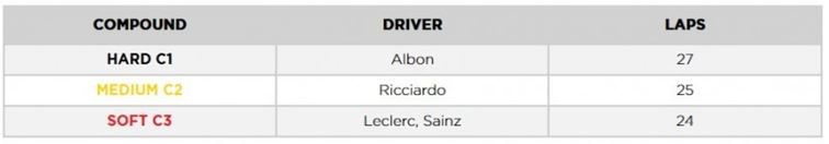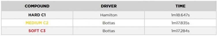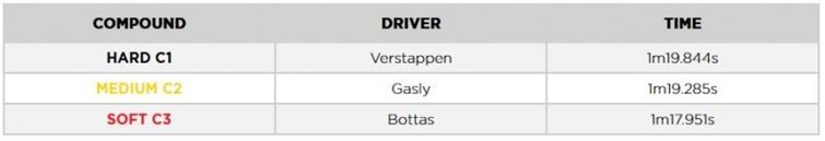 • Até agora, as diferenças de desempenho entre os compostos são de cerca de oito décimos de segundo entre médio e macio e um segundo e um décimo entre duro e médio.