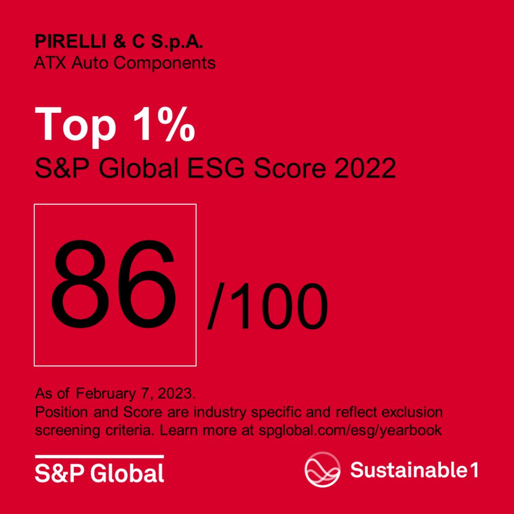 Milão, 7 de fevereiro de 2023 – A Pirelli foi novamente confirmada entre as melhores empresas sustentáveis em nível global, alcançando a qualificação de “Top 1%”, o mais alto nível de reconhecimento no contexto do Anuário de Sustentabilidade 2023 publicado pela S&P Global, com base na análise dos perfis de sustentabilidade de mais de 13.000 empresas.