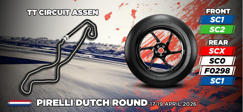 “Com a Etapa Holandesa da Pirelli do WorldSBK 2026, o Campeonato chega ao TT Circuit Assen, uma das pistas mais icônicas do motociclismo mundial. Ao mesmo tempo rápido e técnico, Assen apresenta uma combinação de curvas de baixa, média e alta velocidade, além de condições climáticas frequentemente variáveis, que ao longo dos anos desempenharam um papel decisivo nos resultados das corridas. Para a terceira etapa, confirmando um esforço contínuo de desenvolvimento voltado a melhorar tanto a performance em volta rápida quanto a consistência ao longo da distância de corrida, a Pirelli disponibiliza para equipes e pilotos uma nova solução traseira soft de desenvolvimento, o F0298. Este pneu poderá representar uma alternativa válida ao SC0 padrão, com o objetivo de melhorar a estabilidade garantindo ao mesmo tempo um alto nível de consistência nas condições de corrida.
