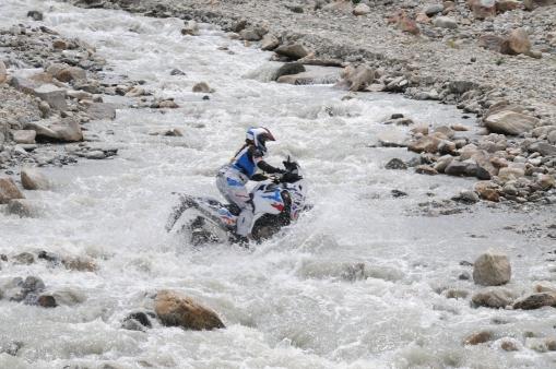 A aventura teve início no Lago Pangong, muito perto da fronteira com a China, às 7h. A primeira rota do Himalaia – Tsaga La – foi rapidamente concluída após cerca de 70 quilômetros de uma trilha suave com um fundo arenoso. O esquadrão partiu em direção à segunda rota, Photi La, percorrendo uma estrada de montanha espetacular, estreita e sinuosa, com asfalto desgastado e ausente em alguns trechos. A altitude de mais de 5.000 metros foi sentida pelos motociclistas e pelas motos, mas não representou nenhum desafio particular, graças à preparação física da equipe e ao sofisticado injetor eletrônico de combustível das Africa Twins, que compensou perfeitamente a queda de oxigênio. Após a descida da rota Photi La, a equipe rapidamente alcançou a altitude mais elevada da expedição, em Umling La, que fica a quase 5.900 metros acima do nível do mar e é atualmente a rota mais alta do mundo que pode ser alcançada por um veículo. Os motociclistas então desceram até Nurbula, também a mais de 5.000 metros, como a última etapa desta aventura em altitude elevada.